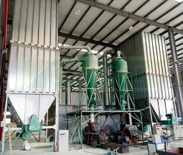 公司設計制造的中央吸塵裝置由控制室、風機、輸送管和料倉組成,自動化程度高。可將由于生產處理時產生的車間粉塵通過中央吸塵裝置進行集中回收,進行處理。